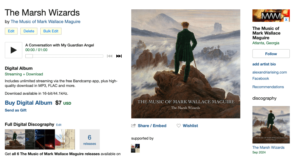 You can purchase this album at https://markwallacemaguire.bandcamp.com/album/the-marsh-wizards and you can stream it on more than 20 services, including iTunes and Spotify.